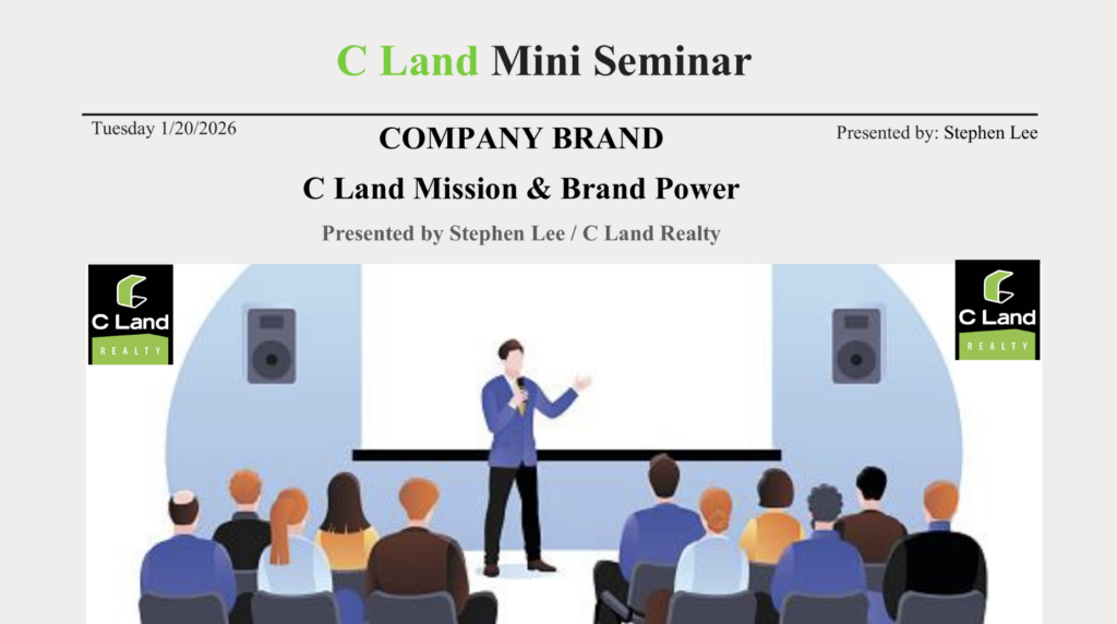 C Land Mission: 1. Serving Clients 2. Earning Profits * Excellent Services shall bring Maximum Profits. * When there is a conflict between SERVING and PROFITS while carrying on our daily business, C Land Realty pursues SERVING first, and PROFITS second. How to do: 1. K : Knowledge (and Experience) 2. I : Information (and Technology) 3. A : Attitude (and Passion) The 3 C’s of...