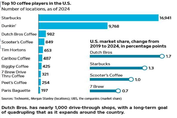 - In the U.S., no brand captures that shift better than Dutch Bros, another Pacific Northwest chain. If you live on the East Coast you might not have heard of it, but chances are you soon will. Dutch Bros now has nearly 1,000 drive through shops mostly in the West and South, with a long-term goal of more than quadrupling that as it expands around the country. Founded in the 1990s by two brothers who left dairy farming to sell espresso from a pushcart in Grants Pass, Ore., its formula is simple: brightly flavored, highly customizable drinks served by upbeat “broistas” who try to remember your name and are probably on too much caffeine.