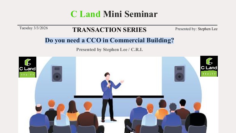 C Land Mission: 1. Serving Clients 2. Earning Profits * Excellent Services shall bring Maximum Profits. * When there is a conflict between SERVING and PROFITS while carrying on our daily business, C Land Realty pursues SERVING first, and PROFITS second. How to do: 1. K : Knowledge (and Experience) 2. I : Information (and Technology) 3. A : Attitude (and Passion) The 3 C’s of...