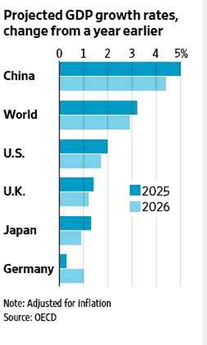 - In a quarterly report on Tuesday, the Paris-based research body forecast the U.S. economy will grow 2% this year and 1.7% next year, having expanded by 2.8% in 2024. In September, the OECD projected growth of 1.8% this year and 1.5% in 2026. It sees the world’s largest economy regaining momentum in 2027, with growth of 1.9%.