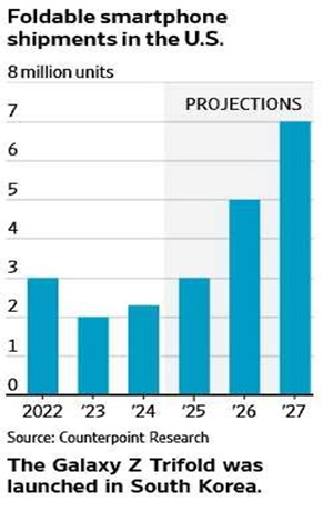 Foldable smartphone shipments / A Samsung Galaxy Z TriFold.