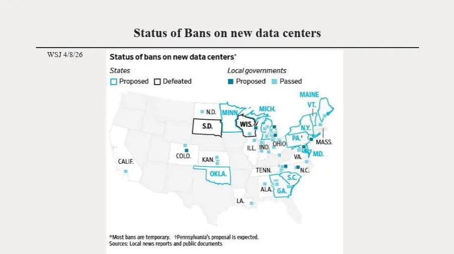 The more than 10 states have proposed temporary bans on data-center construction this year.